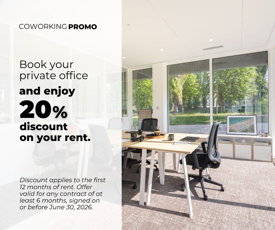 If you have a closed office or a monthly open space, you will have access to your space from Monday to Saturday, 06:00 to 22:30.