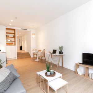 You’ll enjoy a large, bright living room with a comfortable sofa, a sleeping area with double bed and a desk . The apartment also features