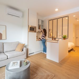 Chaque appartement – individuel ou en colocation – affiche un prix mensuel qui englobe le loyer du logement, les charges, le mobilier et les équipements mis à disposition, mais aussi l’accès à un internet haut-débit et les charges de l’immeuble. Ce loyer comprend également le service de conciergerie, l’accès gratuit et illimité aux espaces communs de la résidence comme la salle de sport ainsi qu’aux événements organisés.